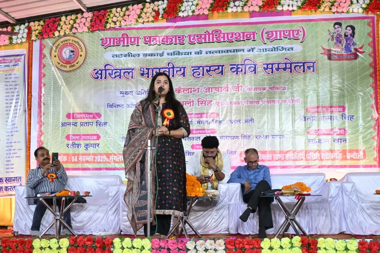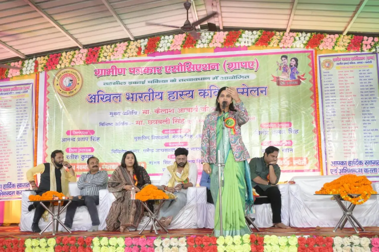 शहाबगंज। गहरे अँधेरे की देहरी से जब शाम ने अपना सोना-सा आलम बिखेरा था,तब हँसी-ठहाकों,शौर-स्वर और भावुक कविताओं की एक अनोखी बहार शुरू हुई।ये बहार थी उस शाम की जब ग्रामीण पत्रकार एसोसिएशन तहसील इकाई चकिया के तत्वाधान में विकास खण्ड कार्यालय परिसर में कर्मनाशा नदी के समीप आयोजित हुए अखिल भारतीय हास्य-कवि सम्मेलन में जहाँ एक-एक रचना ने श्रोताओं की संवेदनाओं को हँसी, व्यंग्य,श्रृंगार से भर दिया।