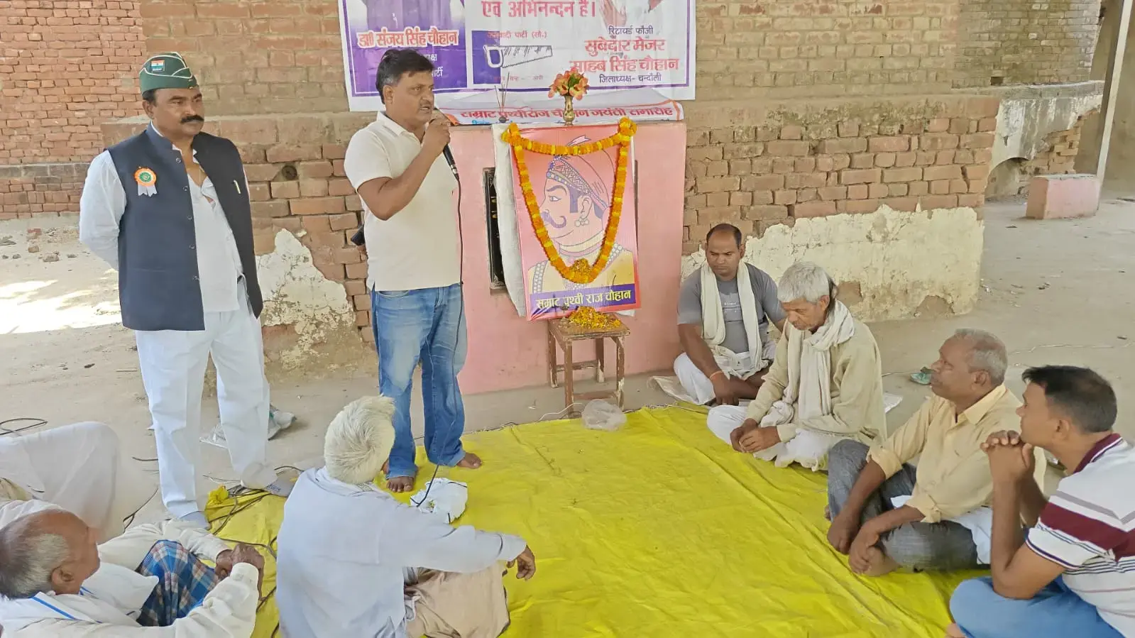 शहाबगंज। क्षेत्र के अमांव व भोड़सर गांव में बुधवार को वीर शिरोमणि सम्राट पृथ्वीराज चौहान का जन्मदिन बड़े हर्षोल्लास एवं धूमधाम के साथ मनाया गया।कार्यक्रम में ग्रामीणों ने सम्राट पृथ्वीराज चौहान के चित्र पर माल्यार्पण कर उनके शौर्य एवं बलिदान को याद किया।अमांव गांव में मुख्य अतिथि पूर्व जिला पंचायत सदस्य प्रतिनिधि रतीश कुमार ने कहा सम्राट पृथ्वीराज चौहान का जीवन हमें मातृभूमि की रक्षा के लिए सर्वस्व न्योछावर करने की प्रेरणा देता है।तराइन के युद्ध में उनका पराक्रम आज भी युवाओं के लिए प्रेरणास्रोत है। हमें उनके आदर्शों को अपने जीवन में उतारना चाहिए। रिटायर्ड फौजी साहब सिंह चौहान ने अपने संबोधन में कहा पृथ्वीराज चौहान केवल एक राजा नहीं,बल्कि स्वाभिमान और वीरता के प्रतीक थे।उन्होंने विदेशी आक्रांताओं के सामने कभी घुटने नहीं टेके।आज की पीढ़ी को उनके इतिहास से सीख लेकर देश सेवा के लिए हमेशा तत्पर रहना चाहिए।ऐसे महापुरुषों की जयंती मनाना हमारा कर्तव्य है।वहीं भोड़सर गांव में भी सम्राट पृथ्वीराज चौहान जी की जयंती धूमधाम से मनाई गई।इस दौरान भारतीय किसान यूनियन के जिला अध्यक्ष सतीश सिंह चौहान ने कहा पृथ्वीराज चौहान हिंदू साम्राज्य की रक्षा के लिए अपनी शहादत दी लेकीन आज वर्तमान सरकार हिंदू धर्म के नाम पर सत्ता में आई है लेकिन हिंदू धर्म के रक्षक को सम्मान नहीं मिल रहा है।उन्होंने कहा कि हम सत्ता में बैठे लोगों से मांग करते हैं कि ऐसे महापुरुष की प्रतिमा को हर चट्टी चौराहों पर लगाया जाए और उनके इतिहास को पुनः वापस लाया जाए।इस अवसर पर राधेश्याम सिह,मिथिलेश कुमार, ब्रम्हांन्द चौहान, महेश चौहान ब्रिकमा चौहान,विजय चौहान दीनदयाल चौहान होरी, संजय अर्जुन चौहान सुदामा चौहान उदय सिंह चौहान,राम रतन चौहान,रामप्यारी चौहान,मनमोहन चौहान,सतनारायण सिंह,मनोहर चौहान, सूरज चौहान आदि लोग उपस्थित थे।